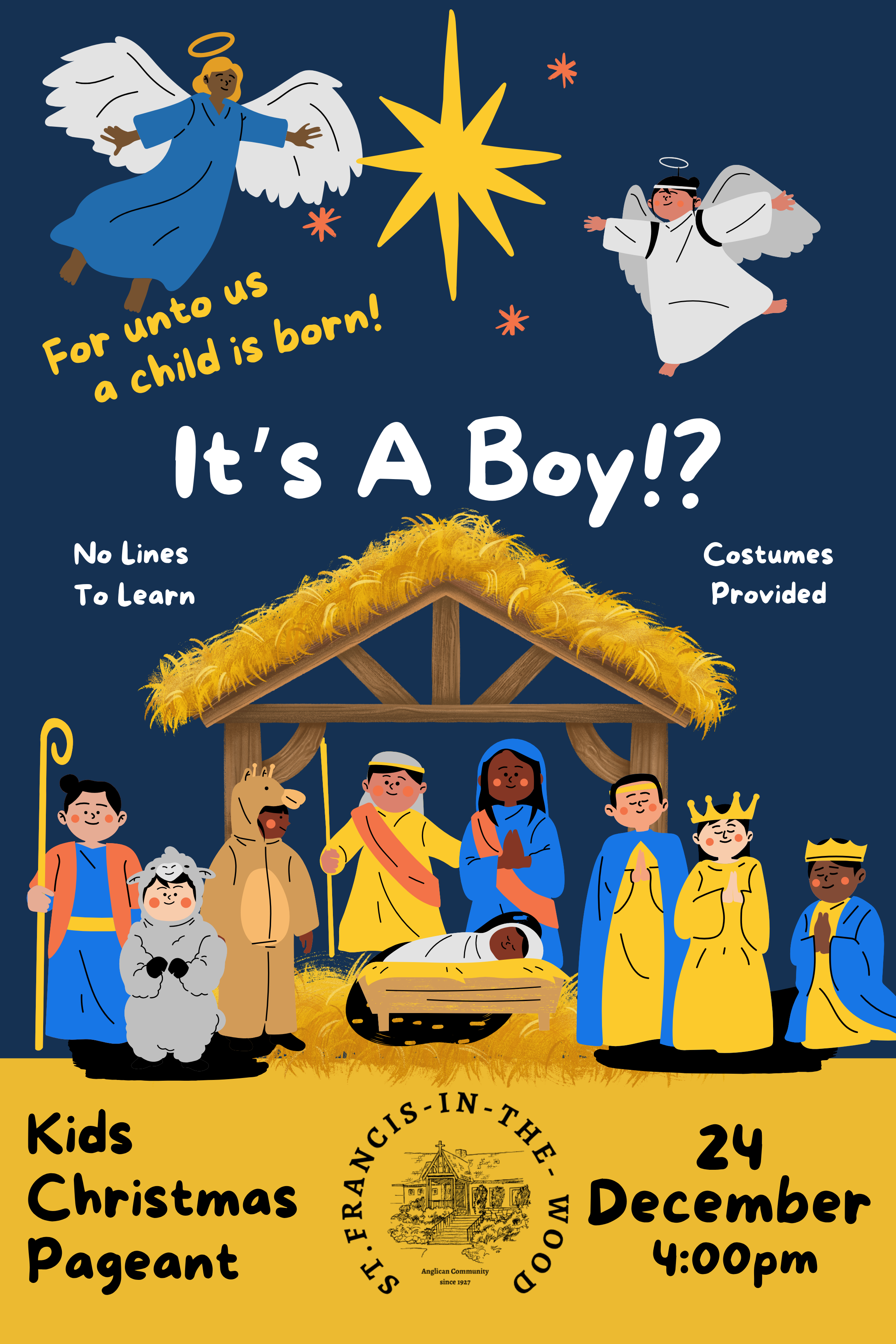 Join us for this informal, joyful, and beautiful pick up pagent for all ages. Together we will sing all our favorite carols and hymns, pray, and retell the story of Christ's birth, ending with a very special appreance by someone famous.