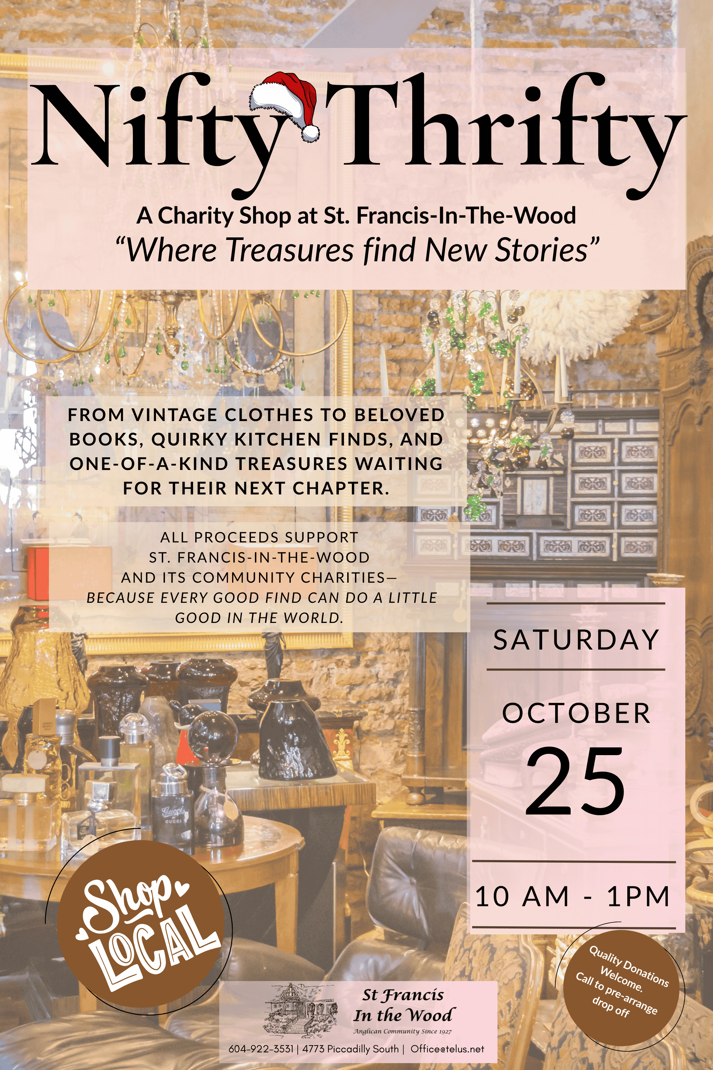 (High quality, gently used/new donations welcome. Please contact the office stfrancis(at)telus.net to arrange drop off. We are unable to accept furniture or broken/worn beyond repair/unusable items.)
